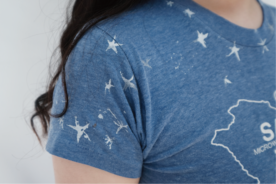 2024年に開催されたOTROMUNDOのシルクスクリーン体験イベント「polvo mágico」で、デザイナー自身がイベント中に制作した一点物のアイテム。